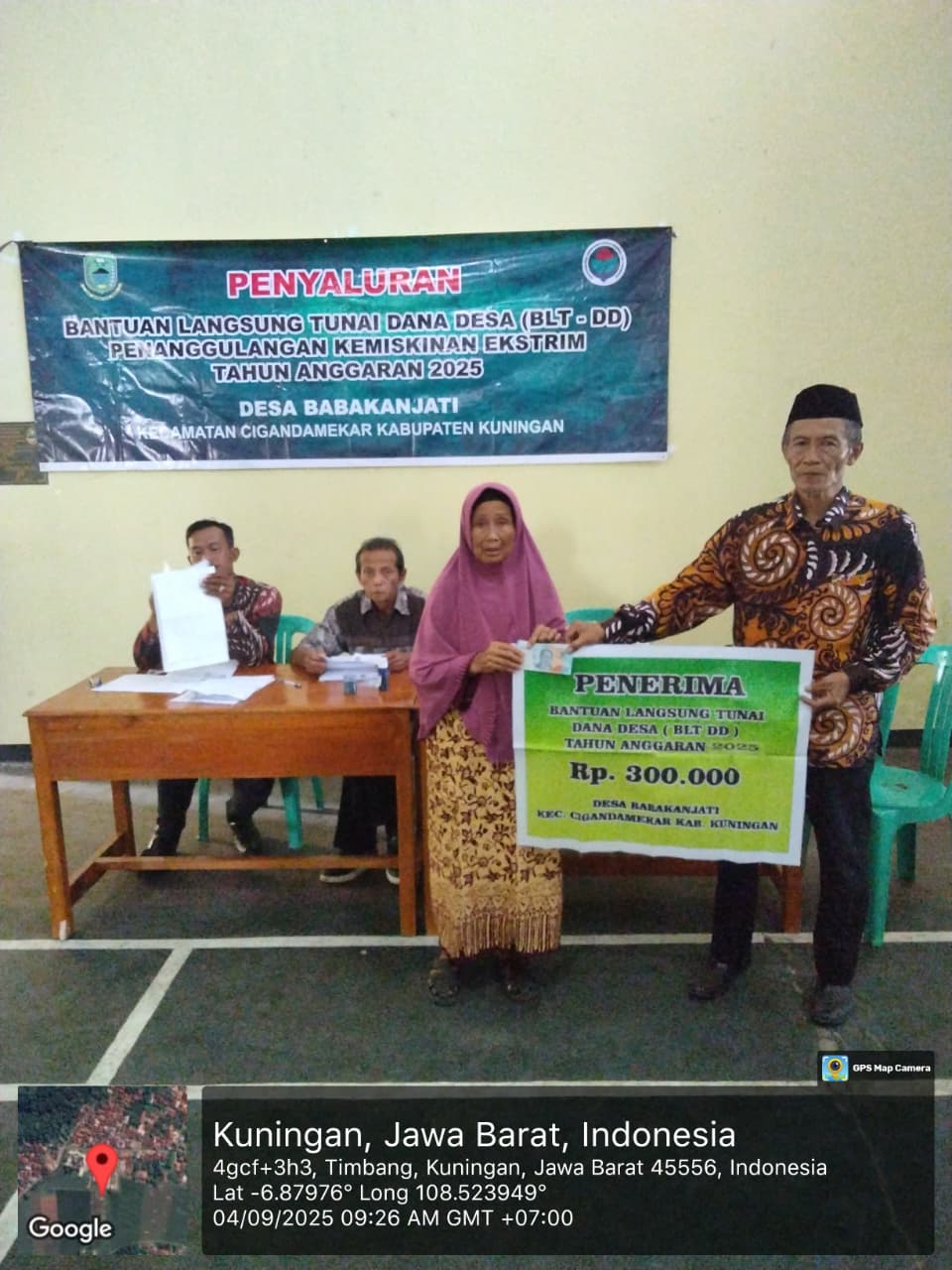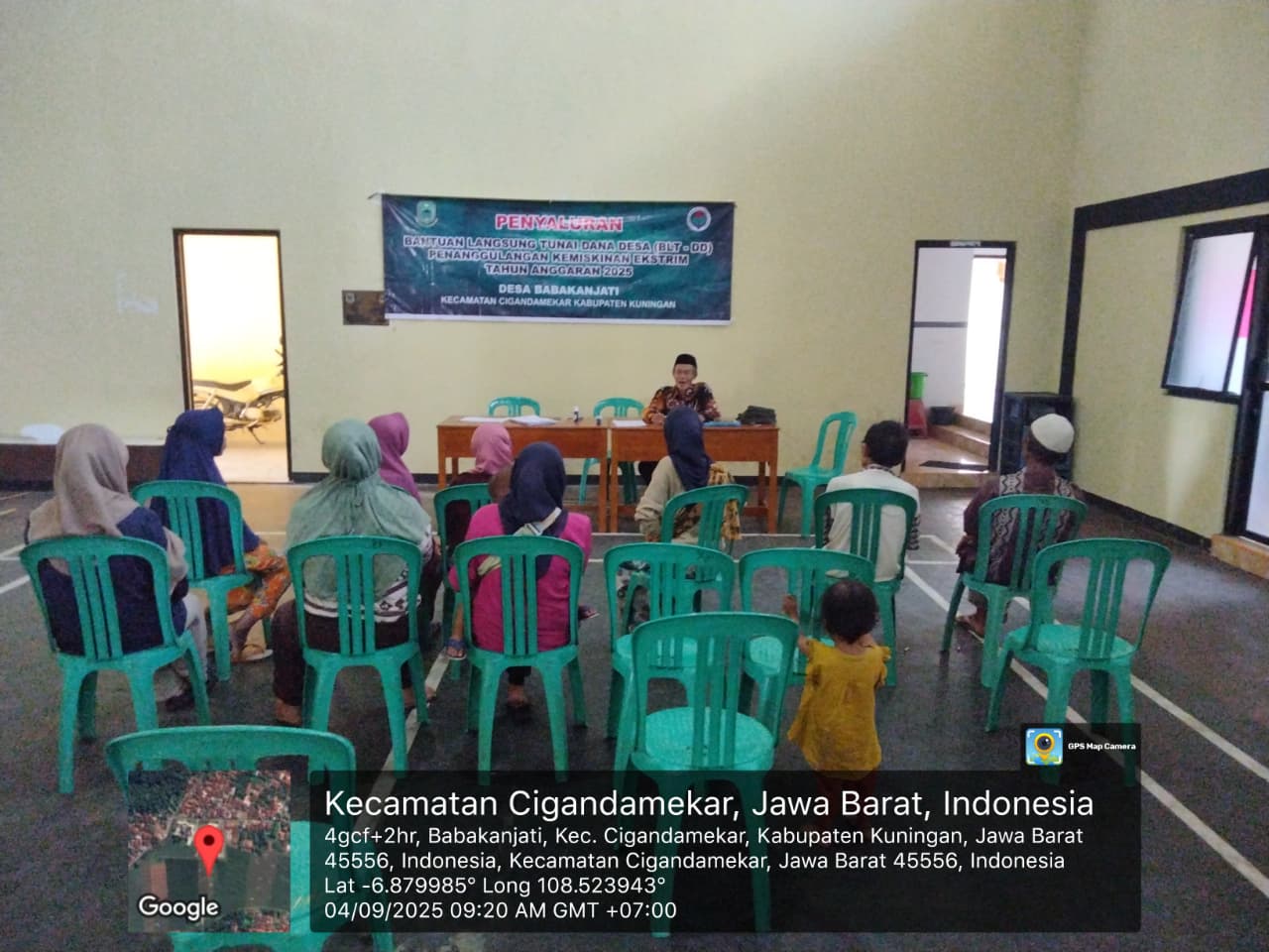 Babakanjati — Pemerintah Desa Babakanjati kembali menyalurkan Bantuan Langsung Tunai Dana Desa (BLT-DD) untuk bulan September kepada warga yang terdampak secara ekonomi. Kegiatan ini dilaksanakan pada hari Kamis, 4 September 2025, bertempat di Kantor Desa Babakanjati.